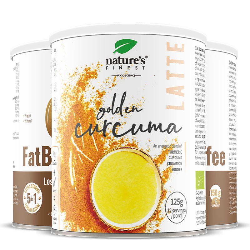 Golden Curcuma Latte: Die empfohlene Tagesdosis beträgt 10 g (2 Teelöffel). Eine Tasse (250 ml) Wasser oder Gemüsemilch einrühren und gut mischen, um die Mischung zu schäumen.