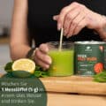 Mischen Sie 1 Messlöffel (5 g) in einem Glas Wasser (200 mL) und trinken Sie es.